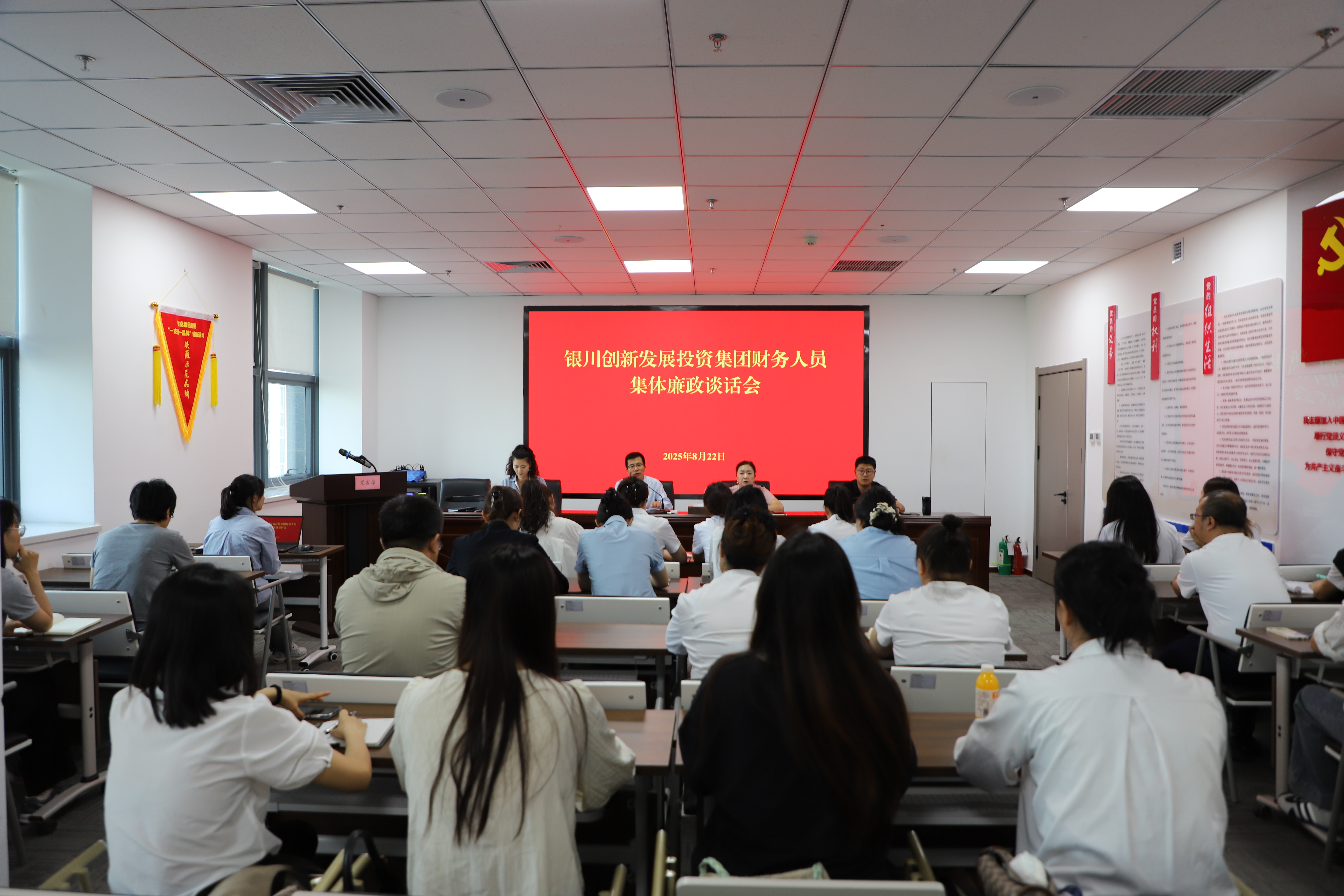 為持續(xù)鞏固深入貫徹中央八項規(guī)定精神學(xué)習(xí)教育成果,切實(shí)提升財務(wù)人員廉政自律意識,從源頭上防范化解財務(wù)領(lǐng)域廉政風(fēng)險,8月22日上午,銀川創(chuàng)投集團(tuán)組織召開財務(wù)人員集體廉政談話會。集團(tuán)黨委副書記、紀(jì)委書記王永安,黨委委員、財務(wù)總監(jiān)李海燕出席會議,集團(tuán)及各子公司財務(wù)人員共30余人參會。